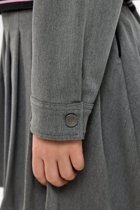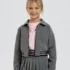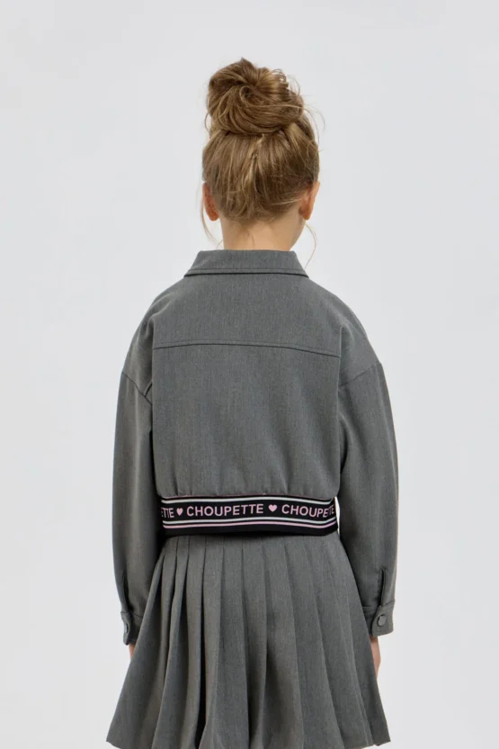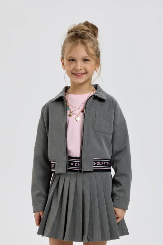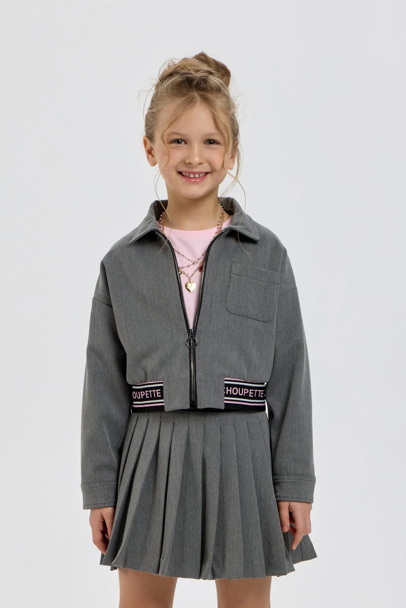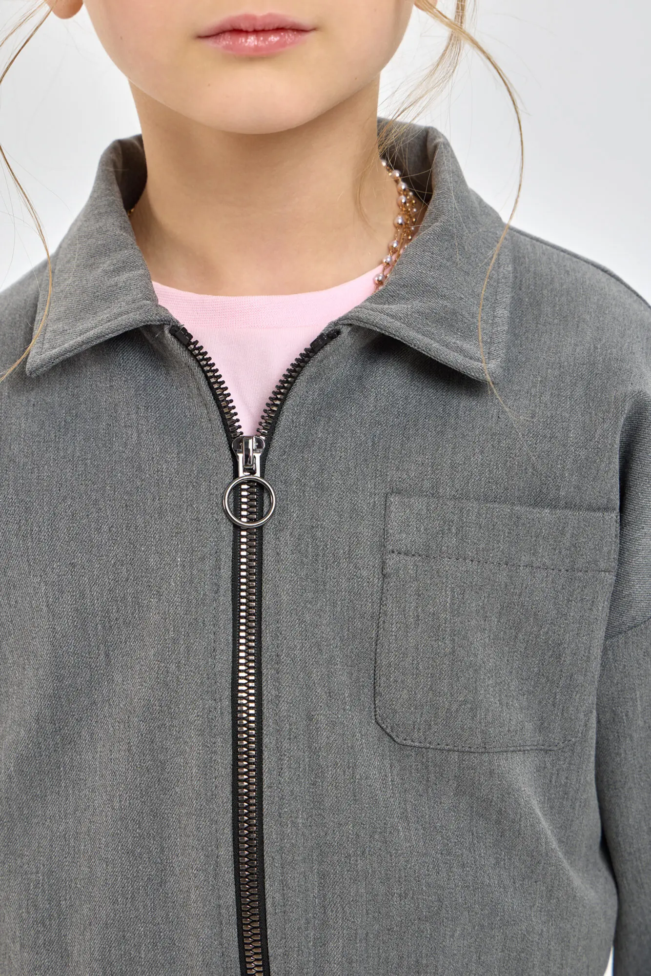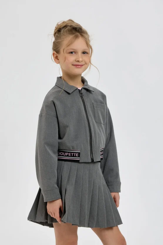 Մոխրագույն երանգի ոճային բոմբեր բաճկոնը հիանալի լրացում կլինի աղջկա հիմնական զգեստապահարանին։ Ազատ ձևվածքով մոդելը՝ իջեցված ուսագծով, համապատասխանում է երիտասարդական նորաձևության արդի միտումներին։ Արտադրանքի ներքևի հատվածի էլաստիկ դեկորատիվ տարրերը և կրծքավանդակի գրպանը ավելացնում են յուրօրինակություն։