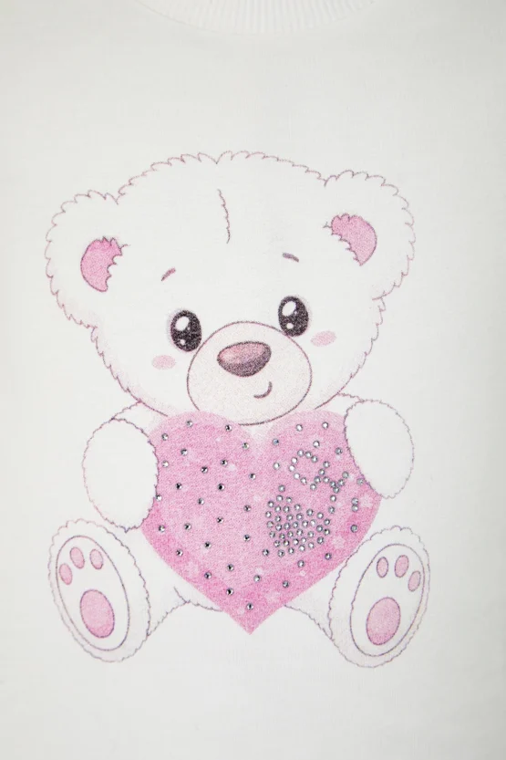 Օրիգինալ դեկորը ներկայացված է մեծ պրինտով և փայլուն ստրասներով։ Արտադրանքի ներքևի հատվածը և թևքերը ձևավորված են կարված մանժետներով։ Այս սվիթշոթը հիանալի համադրվում է տաբատների և տարբեր կիսաշրջազգեստների հետ։
