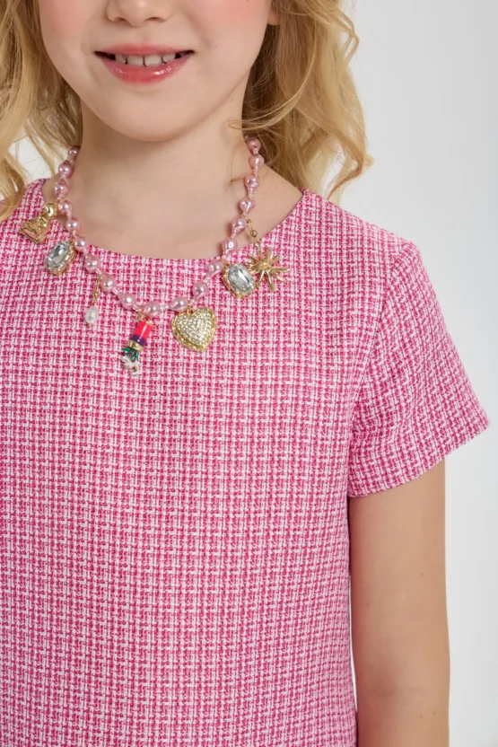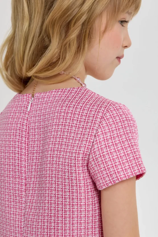 Աղջկա համար նախատեսված մանր վանդակավոր նորաձև վարդագույն զգեստը սեզոնի թրենդն է։ Ժամանակակից ձևվածքի և հարմարավետ սիլուետի շնորհիվ այս հագուստը բոլոր հնարավորություններն ունի դառնալու մանկական զգեստապահարանի ամենասիրելի մասը։