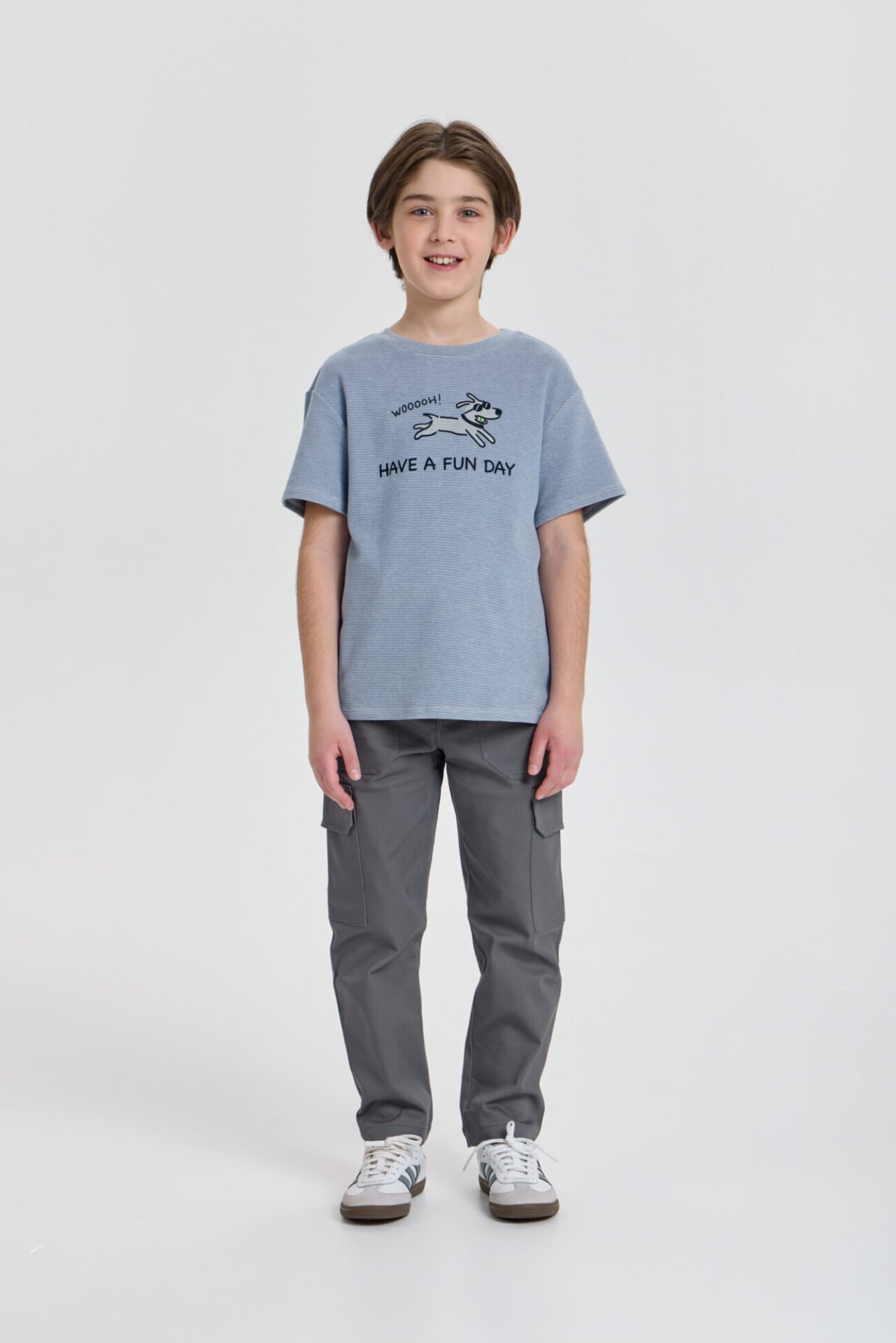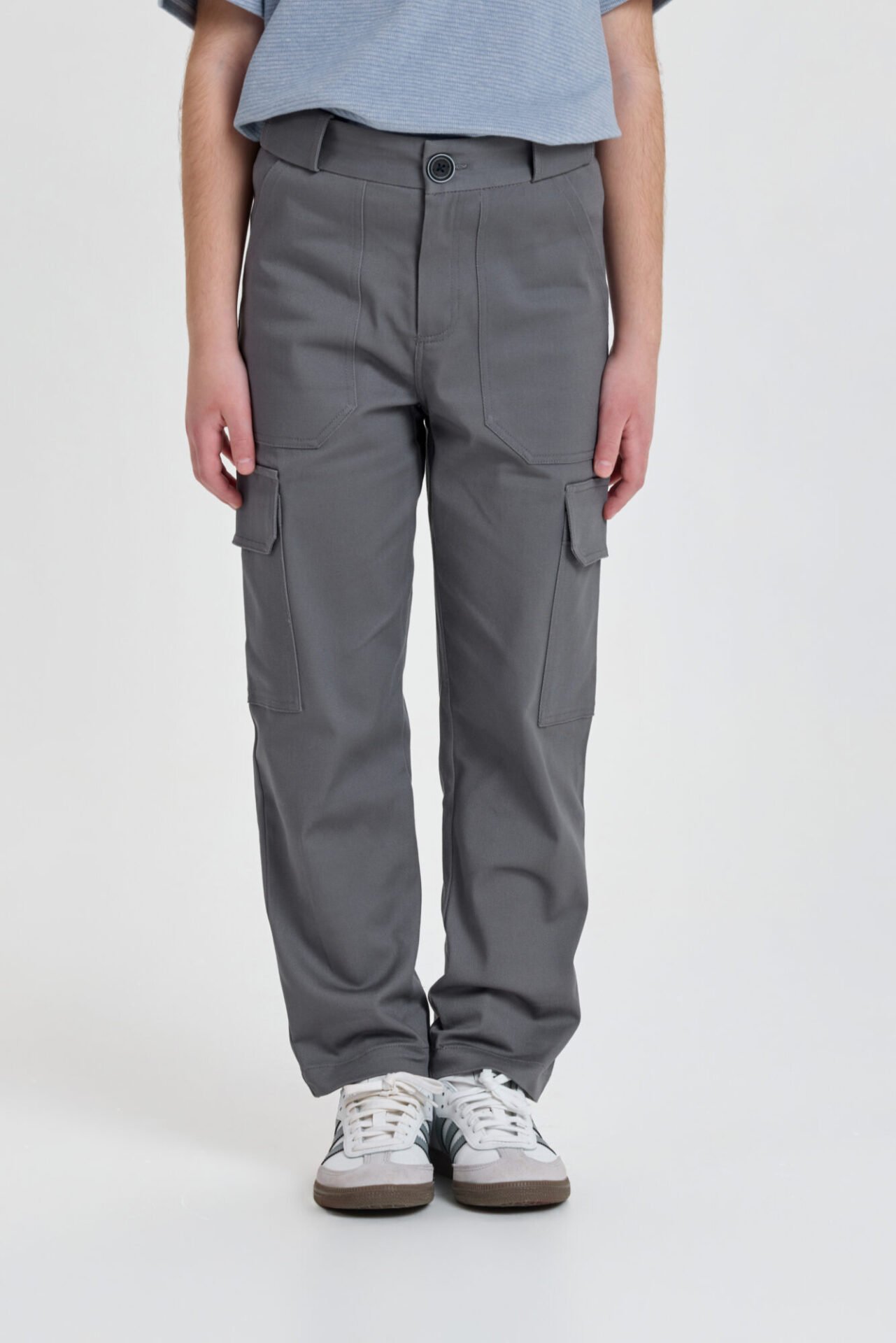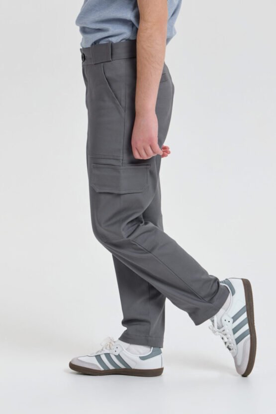 Տղայի համար նախատեսված տաբատը հիանալի ընտրություն է ոճային փողոցային կերպար ստեղծելու համար։ Ուղիղ ձևվածքով մոդելը պատրաստված է նորաձև մոխրագույն թվիլ գործվածքից։ Գոտկատեղի լայնությունը կարգավորվում է երկարացված գոտի-ստրոպայի միջոցով։