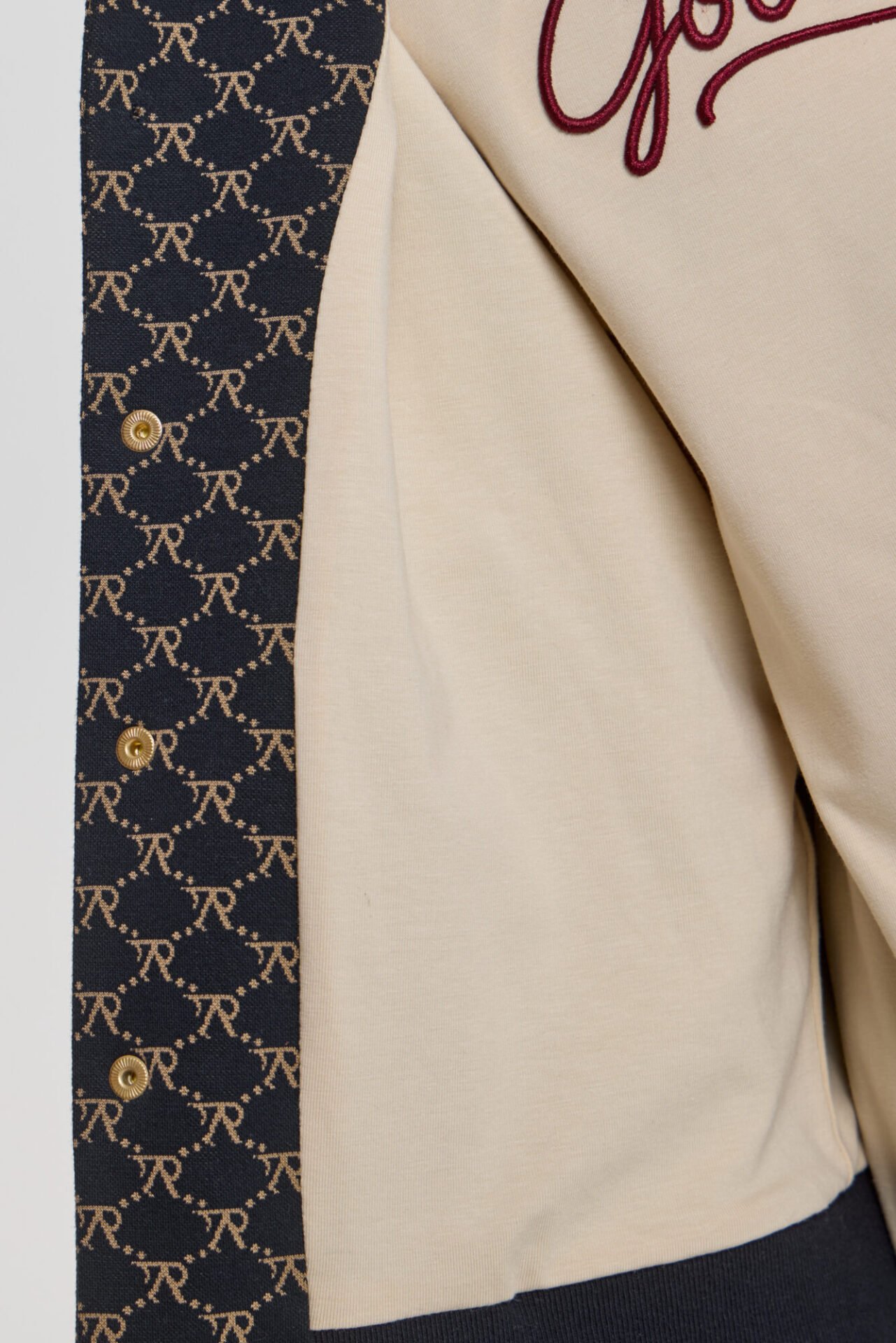 Կանգուն օձիքը, ներքևի եզրը և թևքերի մանժետները ձևավորված են կոնտրաստային զոլերով։ Բոմբերը հեշտությամբ համադրվում է թե՛ առօրյա հագուստի, թե՛ ավելի խիստ և դասական համադրությունների հետ։