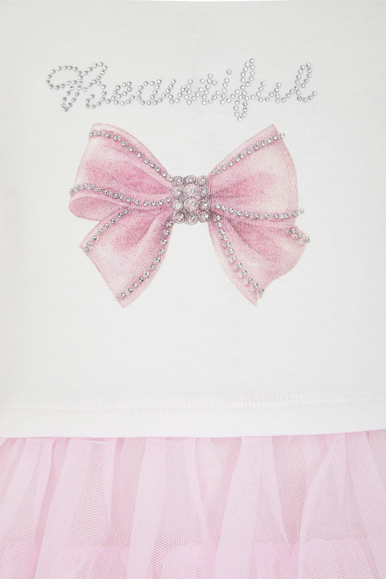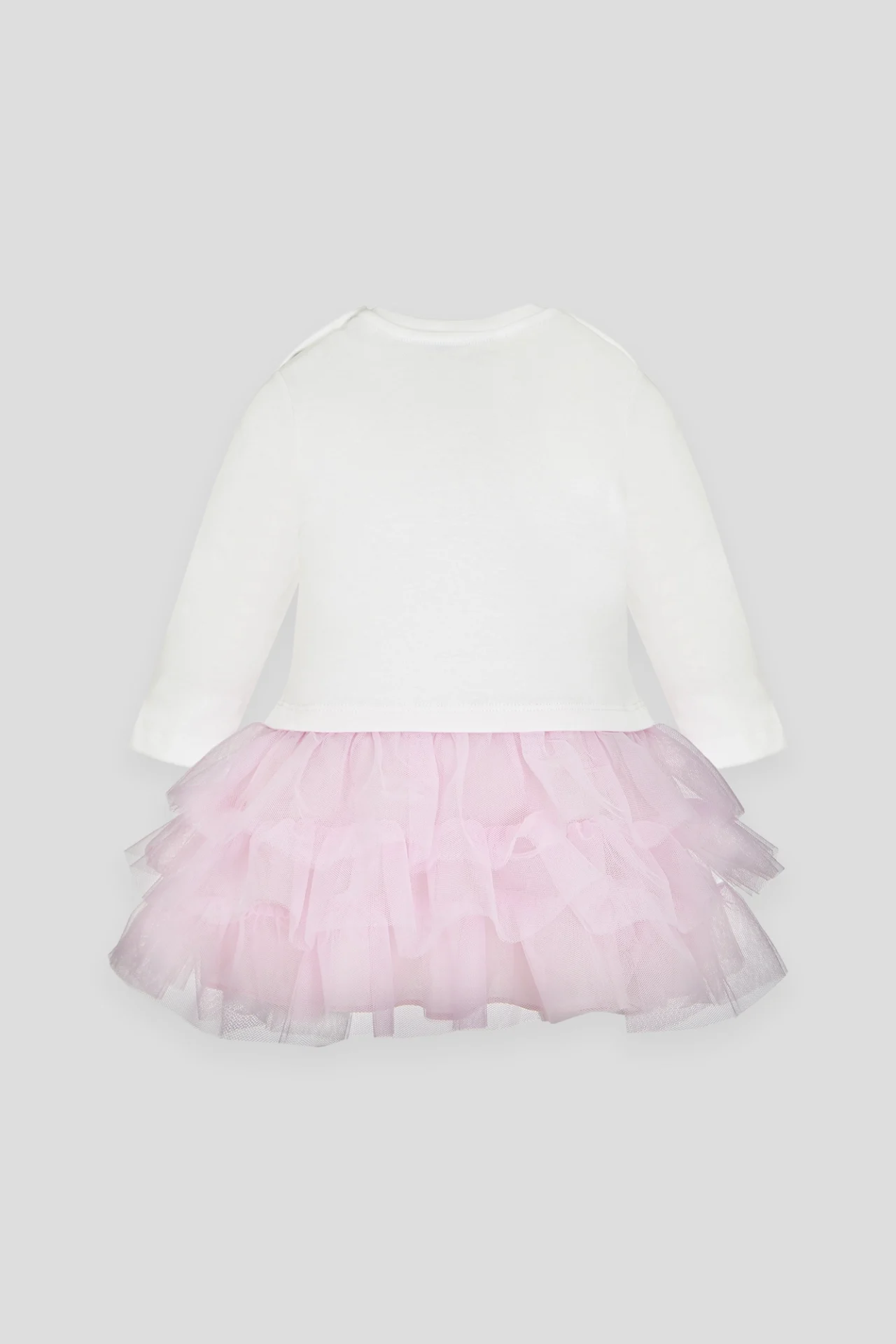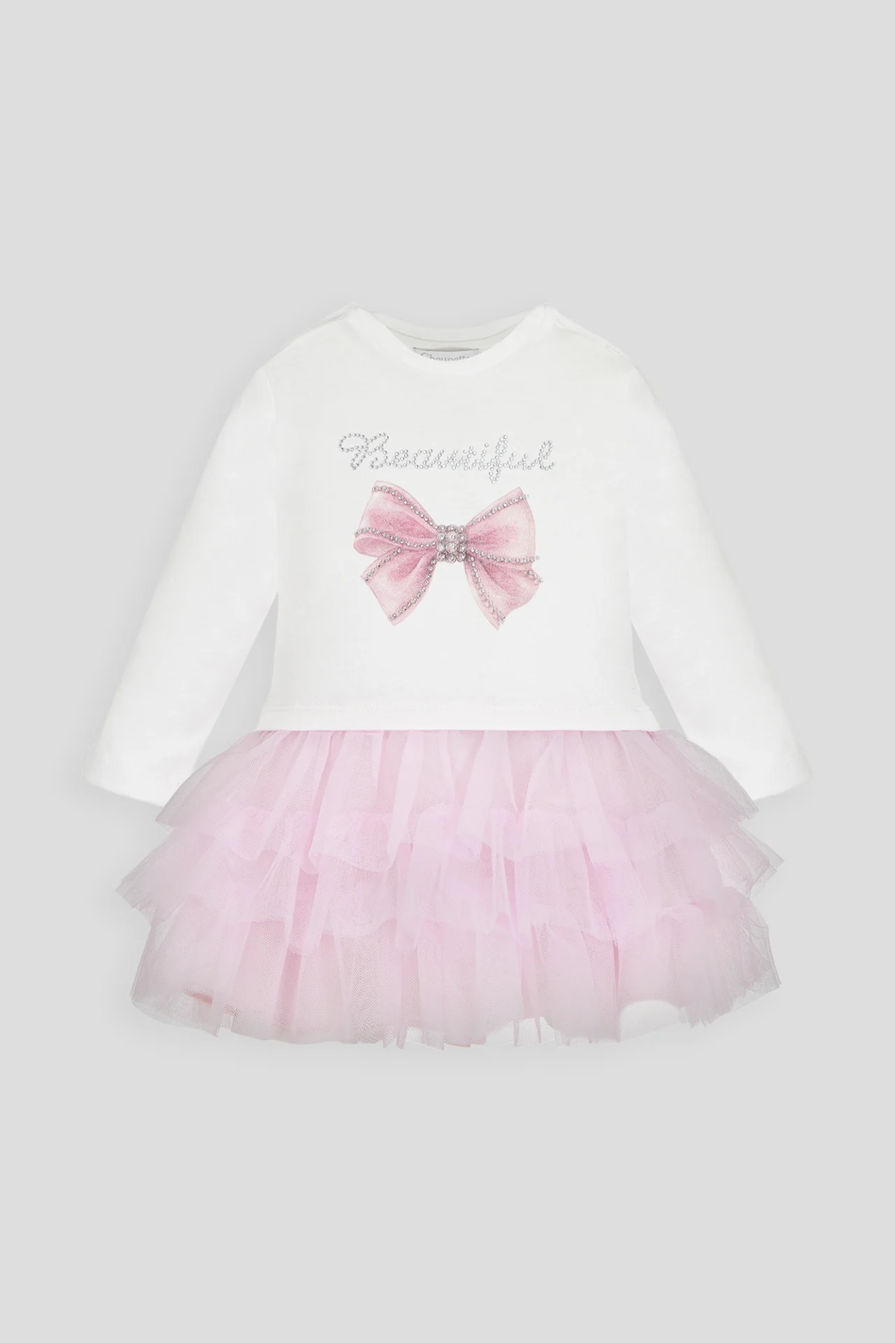 Զգեստի կենտրոնական հատվածի դեկորը գրավում է ուշադրությունը և ստեղծում է ոճային շեշտադրում։ Զգեստը պատրաստված է 100% բամբակից, ինչը ապահովում է երեխայի առավելագույն հարմարավետությունը։