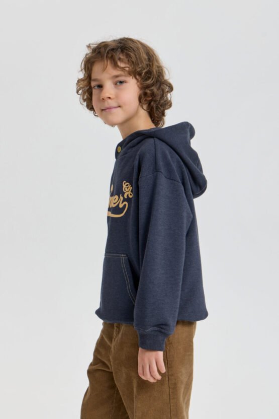 Այս ժամանակակից տղայի վերնաշապիկը համատեղում է ժամանակակից միտումները՝ ազատ, մեծ չափսի ուրվագիծ, նորաձև տեսք և ուշադրություն մանրուքների նկատմամբ: Վերնաշապիկը ամրացվում է կոճակով՝ ստեղծելով բարձր օձիք՝ զով քամիներից լրացուցիչ պաշտպանության համար: Գործնական կենգուրուի տեսքով գրպանը իդեալական է հեռախոս և այլ փոքր իրեր պահելու համար: Դեկորատիվ տառային նախշը ոճային երանգ է հաղորդում: Այս միագույն սվիտերը պատրաստված է բարձրորակ բամբակից՝ զբոսանքի և ակտիվ զբոսանքի ժամանակ առավելագույն հարմարավետություն ապահովելու համար: Դրա բազմակողմանիությունը հեշտացնում է այն համադրելը տարբեր հագուստի իրերի հետ:Զանգահարեք մեզ +374 43 565801