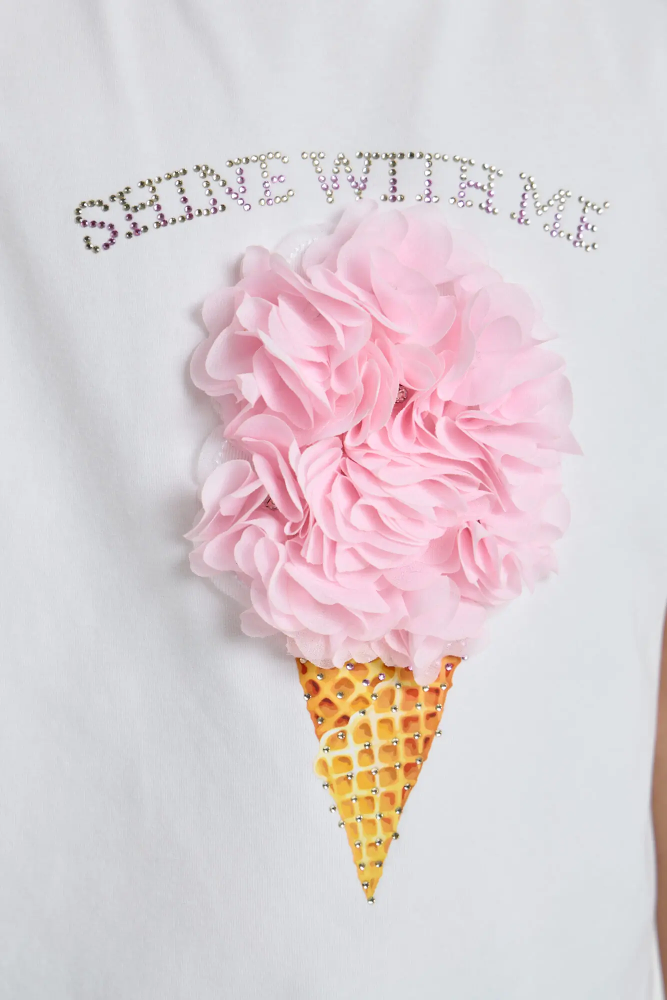 Ամառային կերպարի համար երիտասարդ տիկնոջը հիանալի ընտրություն կլինի պրինտով շապիկը։ Ազատ սիլուետով և կարճ թևքերով այս տոնական մոդելը ոչ միայն գործնական է, այլև շատ նորաձև։ Օրիգինալ պրինտը, լրացված 3D դեկորով, հագուստին հաղորդում է յուրահատկություն և հատուկ հմայք։