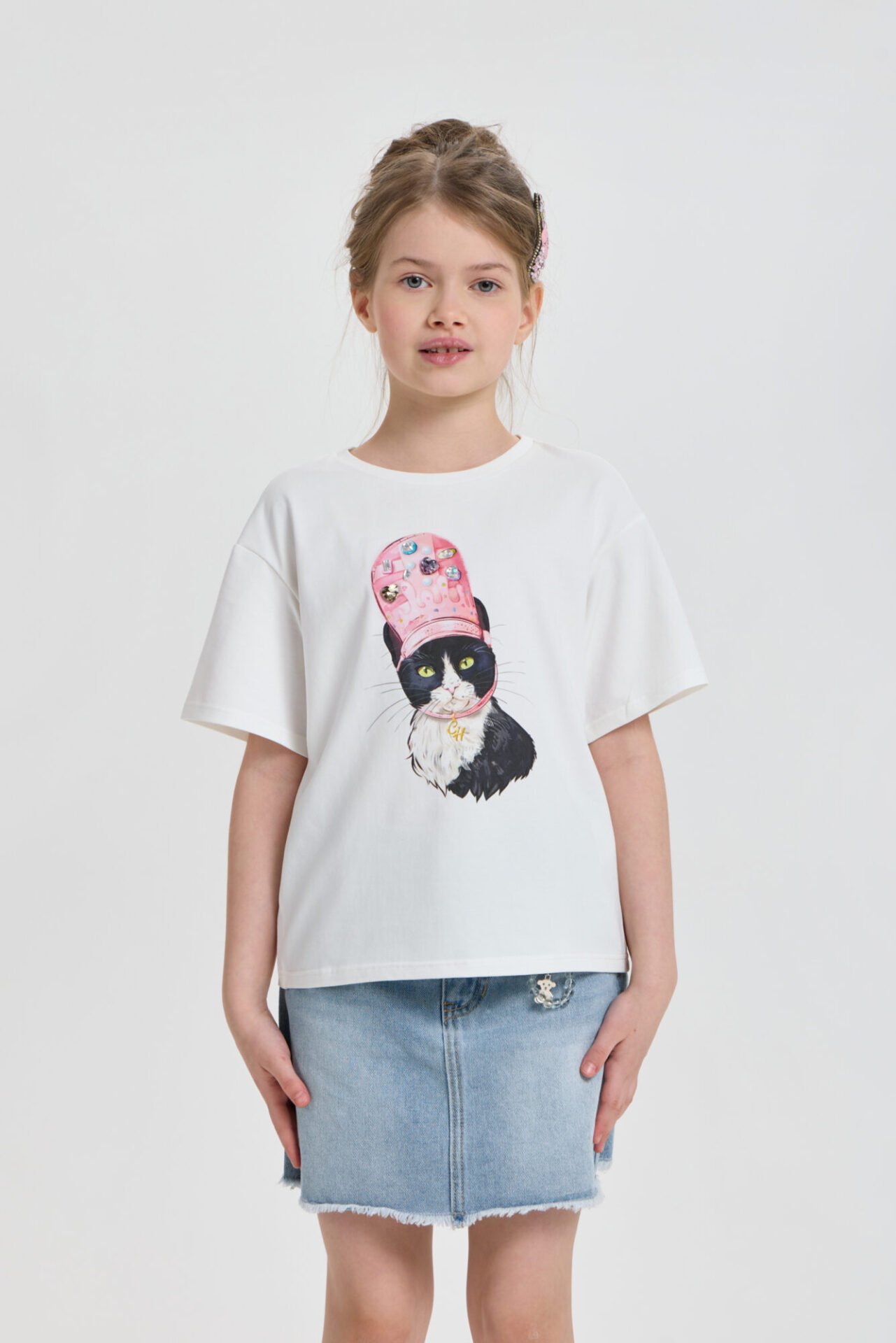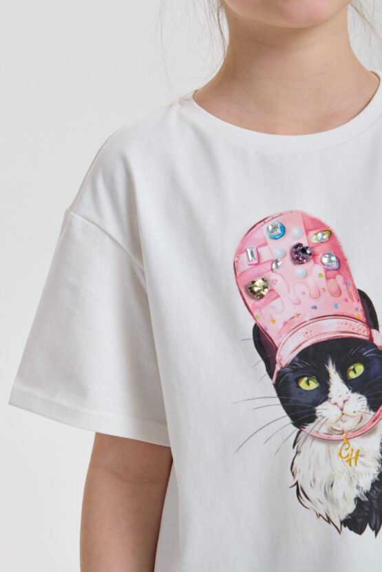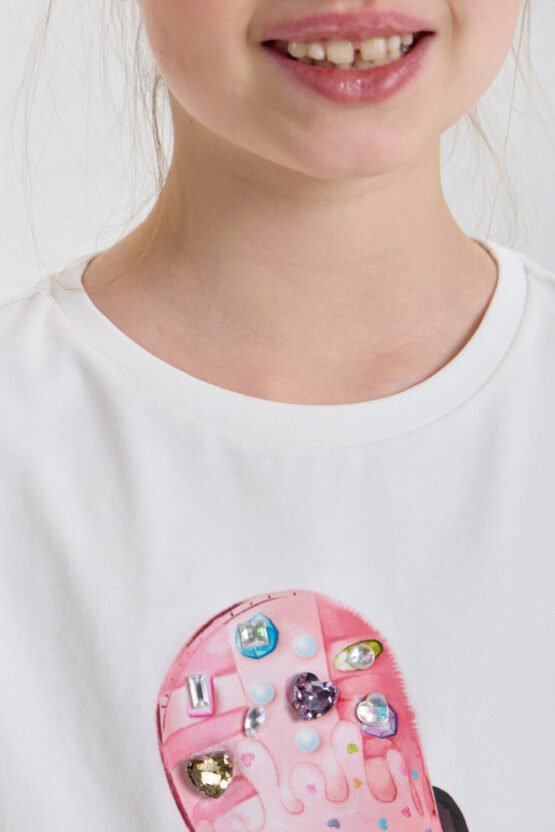 Նուրբ և շնչող բամբակյա գործվածքի շնորհիվ երեխան ողջ օրվա ընթացքում իրեն հարմարավետ կզգա․ նյութը թույլ է տալիս մաշկին շնչել և չի առաջացնում անհարմարություն։ Վառ և հագեցած պատկերն ու 3D ապլիկացիան անմիջապես գրավում են ուշադրությունը և ընդգծում երիտասարդ տիկնոջ անկրկնելի ոճը։
