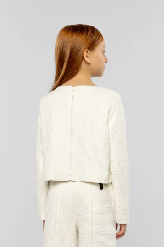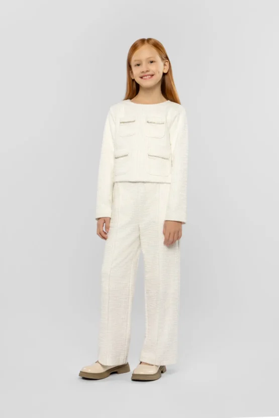 Այս էլեգանտ աղջիկների բաճկոնը տաք սպիտակ երանգով ոչ միայն կընդգծի ձեր անհատականությունը, այլև կդառնա բազմակողմանի զգեստապահարանի անբաժանելի մասը: Դրա հանգիստ տեսքը ոճային է և շատ էլեգանտ: Նորաձև արհեստական գրպանները, զարդարված էլեգանտ ոսկե շղթայով, յուրահատուկ հպում են հաղորդում: Ամբողջ երկարությամբ կայծակաճարմանդը զարդարում է մեջքը: Այս բաճկոնը հեշտ է համադրել տարբեր հագուստների հետ, և նույն հավաքածուի տաբատների հետ համադրելիս այն ստեղծում է ներդաշնակ համույթ:Զանգահարեք մեզ +374 43 565801