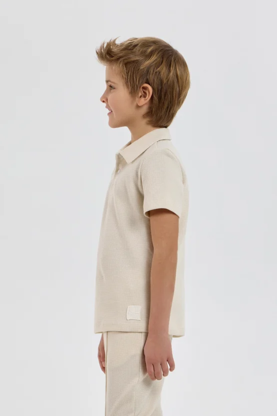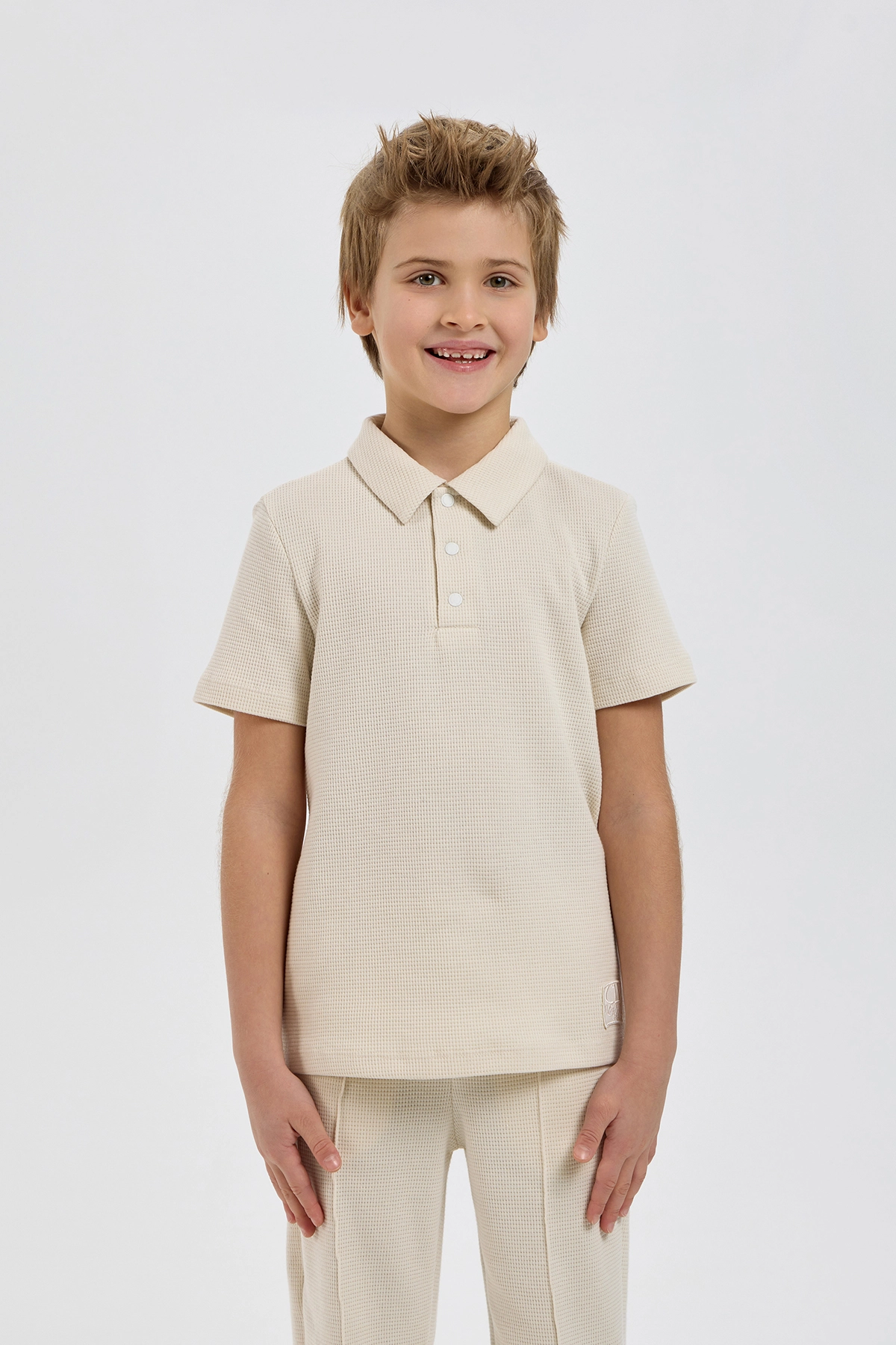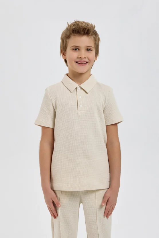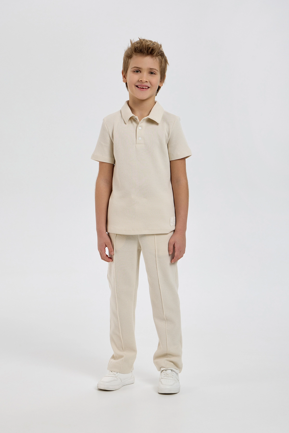 Այս տղայի տրիկոտաժե կոստյումը ոճային և գործնական հավաքածու է, որը բաղկացած է սվիտերից և տաբատից: Սվիտերն ունի ազատ չափս և կարճ թևքեր: Այն ունի դասական, ներքև ծալվող օձիք՝ կոճակով փակվող: Ուղիղ տաբատն ավարտվում է նրբագեղ ծալքերով: Առաձգական գոտկատեղն ավարտվում է լարով՝ կատարյալ տեղավորվելու համար: Երկու կողային գրպանները լրացուցիչ ֆունկցիոնալություն են հաղորդում:Զանգահարեք մեզ +374 43 565801