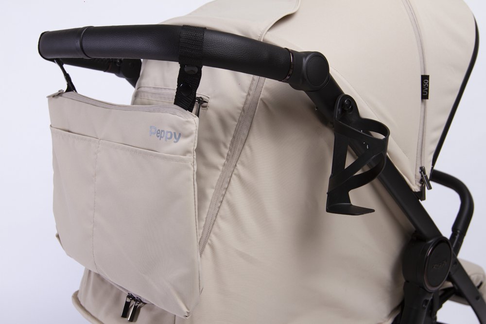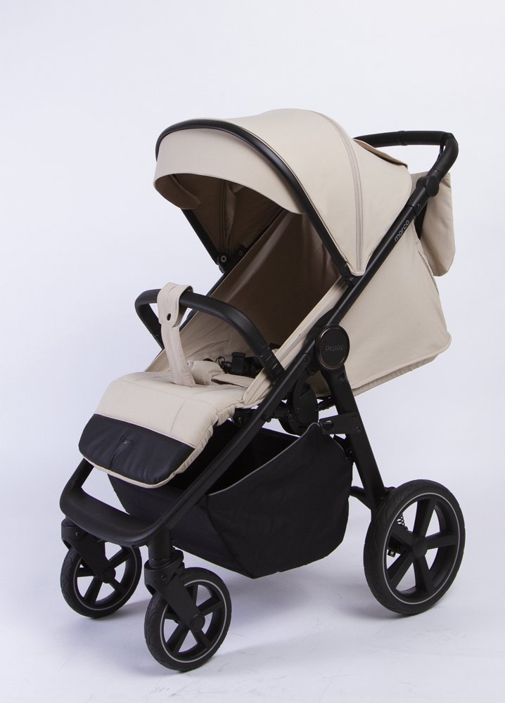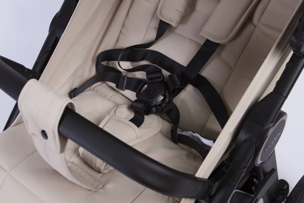 Коляска польского производства изготовлена ​​из премиальной ткани матового оттенка, что придает модели дорогой вид, а также защищает ребенка от ультрафиолетовых лучей (UV50), сильного ветра, дождя и снега.