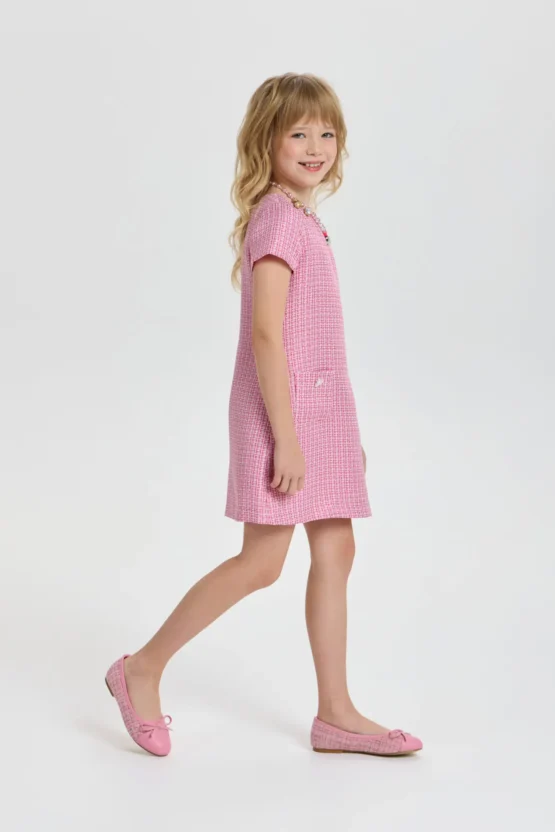 Աղջկա համար նախատեսված մանր վանդակավոր նորաձև վարդագույն զգեստը սեզոնի թրենդն է։ Ժամանակակից ձևվածքի և հարմարավետ սիլուետի շնորհիվ այս հագուստը բոլոր հնարավորություններն ունի դառնալու մանկական զգեստապահարանի ամենասիրելի մասը։