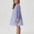 Այս նրբագեղ ժանյակավոր զգեստը նուրբ կապույտ գույնի է, ունի նրբագեղ նավակի ձև ունեցող դեկոլտե, որն ընդգծում է պարանոցն ու ուսերը՝ հաղորդելով նրբագեղ տեսք։ Բարձր իրանը ստեղծում է թեթևության և խաղայինության էֆեկտ՝ ընդգծելով ուրվագիծը։ Ծավալուն թևքերը հաղորդում են օդայինություն հանդերձանքին և ապահովում շարժումների ազատություն։ Զգեստի առջևի մասը զարդարված է հմայիչ ծաղիկների տեսքով նրբագեղ դեկորատիվ տարրերով։ Փայլուն փայլերը ցրված են զգեստի ամբողջ մակերեսով։ Այս մոդելը կլինի իդեալական ընտրություն հատուկ առիթների համար։ Զգեստը ամրացվում է կայծակաճարմանդով։Զանգահարեք մեզ +374 43 565801