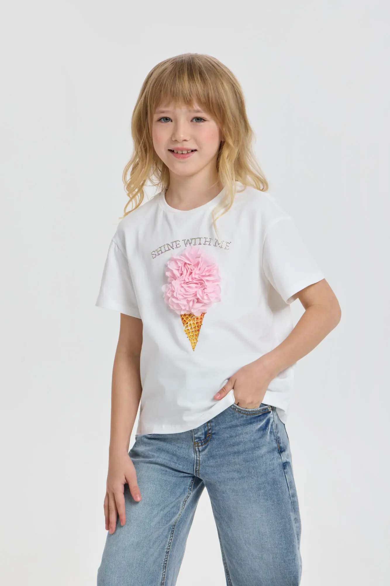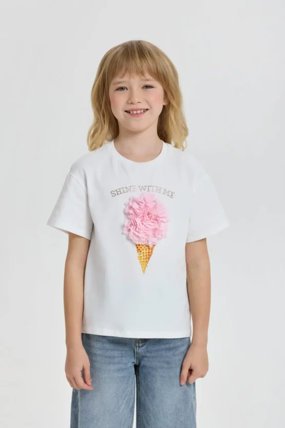 Ամառային կերպարի համար երիտասարդ տիկնոջը հիանալի ընտրություն կլինի պրինտով շապիկը։ Ազատ սիլուետով և կարճ թևքերով այս տոնական մոդելը ոչ միայն գործնական է, այլև շատ նորաձև։ Օրիգինալ պրինտը, լրացված 3D դեկորով, հագուստին հաղորդում է յուրահատկություն և հատուկ հմայք։