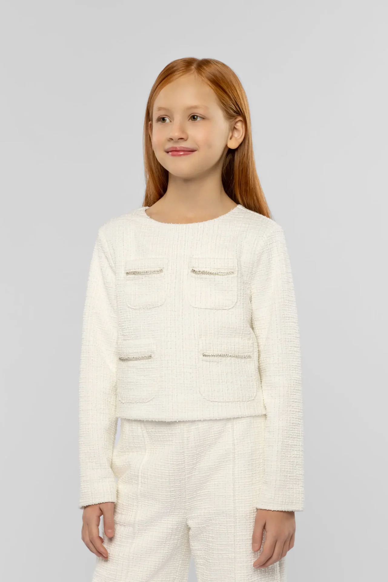Այս էլեգանտ աղջիկների բաճկոնը տաք սպիտակ երանգով ոչ միայն կընդգծի ձեր անհատականությունը, այլև կդառնա բազմակողմանի զգեստապահարանի անբաժանելի մասը: Դրա հանգիստ տեսքը ոճային է և շատ էլեգանտ: Նորաձև արհեստական գրպանները, զարդարված էլեգանտ ոսկե շղթայով, յուրահատուկ հպում են հաղորդում: Ամբողջ երկարությամբ կայծակաճարմանդը զարդարում է մեջքը: Այս բաճկոնը հեշտ է համադրել տարբեր հագուստների հետ, և նույն հավաքածուի տաբատների հետ համադրելիս այն ստեղծում է ներդաշնակ համույթ:Զանգահարեք մեզ +374 43 565801