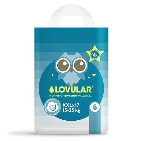 Вес ребенка: 15-25 кг Количество: 17 шт Серия: Night Размер: XXL Бренд: Lovular